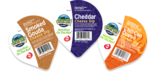 Single-serve, foil-sealed 2-ounce cheese dips —shelf-stable, portable, and USDA-approved to meet 1 M/MA for easy snacking with chips, crackers, or veggies.