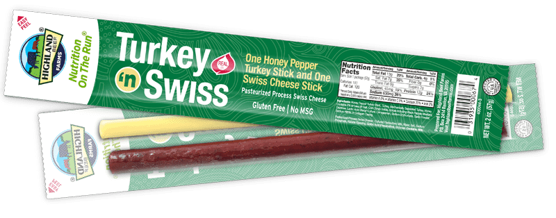Ingredients: Honey Pepper Turkey Stick – Turkey, Mechanically Separated, Turkey, Honey. Contains 2% Or Less Of: Salt, Corn Syrup Solids, Spices Including Black Pepper, Mustard, Dextrose, Lactic Acid Starter Culture, Carrageenan, Sodium Erythorbate, Garlic Powder, Sodium Nitrate. In Beef Collagen Casing. Pasteurized Process Swiss Cheese Stick – Cultured Pasteurized Mild, Water, Salt, Sodium Phosphate, Natural Flavoring, Salt, Sorbic Acid (Preservative), Enzymes. Contains Milk. Gluten Free.